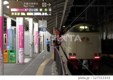 闇夜の姫路駅を発車する寝台特急サンライズ瀬戸・出雲号