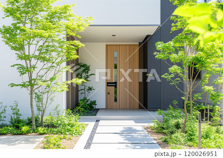 新築の家のイメージ 玄関まわりと植栽