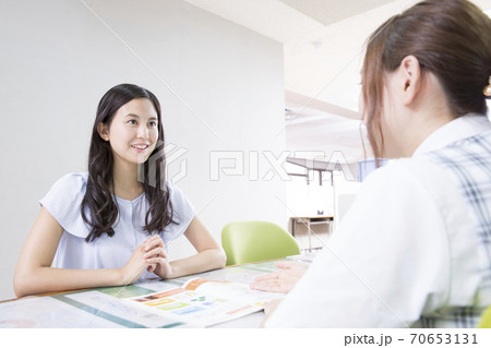 エステサロンで相談する若い女性