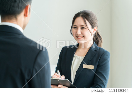 受付で女性客を応対する男性スタッフ