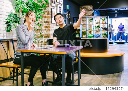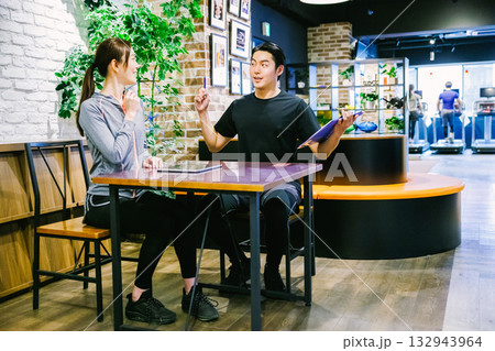 ジムの入会手続き・ヒアリングをするパーソナルトレーナー・スタッフの男性