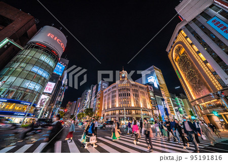 日本の東京都市景観 入国制限撤廃、外国人の個人旅行も解禁…夜も賑わうネオン輝く銀座=10月11日