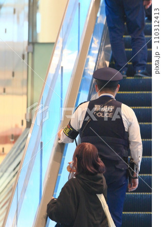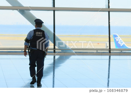 空港を巡回する警察官 後ろ姿 警備 警視庁