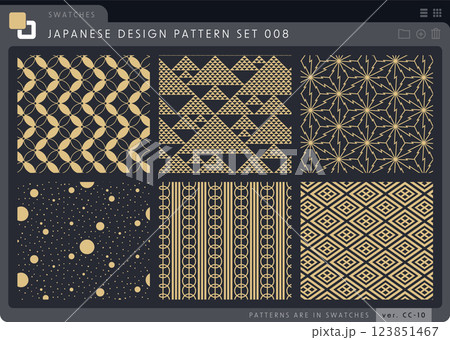 シームレスな和柄のパターンセットシリーズ008。