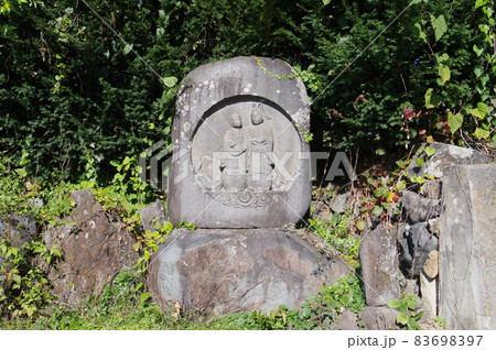 信州 松本の文化財 入山辺中村地区の双体道祖神 高遠石工 藤森吉弥の彫像
