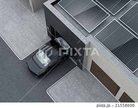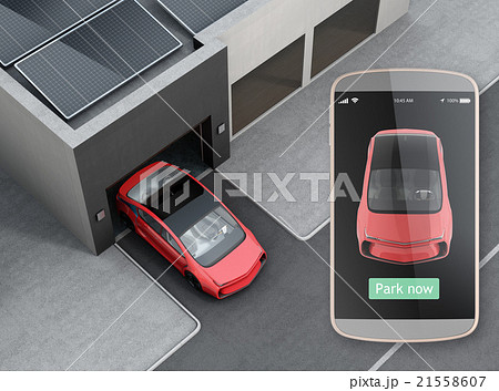 入庫中の自動運転車。駐車支援システムコンセプト。