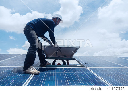 engineer team working on replacement solar panel