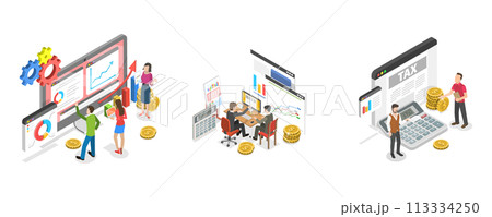 3D Isometric Flat Illustration of Business Analysis, Managing Financial Income. Item 3