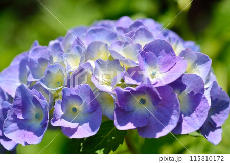 【備中国一宮】吉備津神社のアジサイ園に咲く青いアジサイの花と回廊3 岡山県岡山市北区