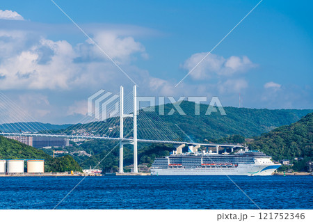 長崎港客船入港(SevenSeas Explorer)女神大橋から スクエア【長崎市】