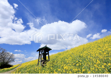 堤の菜の花と祠