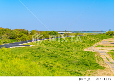 河川敷の堤防整備 整備された入間川流域 2023.04 a-2 ビビッド