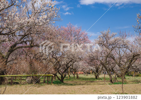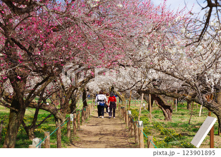 埼玉県入間郡越生町 越生梅林のしだれ梅と白梅