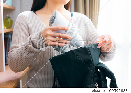 荷造りをする女性 トラベルセット 旅行 入院 出張 コピースペース