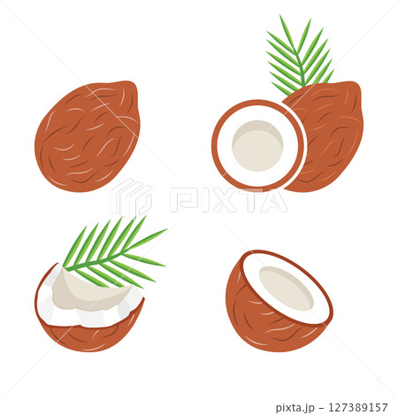 Coconut icon set collection in flat style. Healthy food vector illustration on isolated background. Coco plant sign business concept.
