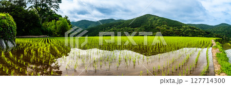 大中尾棚田 田植え後 パノラマ 【長崎市】