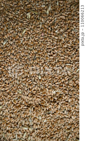 vertical image of whole wheat grain scattered on a flat surface as a natural textured light background, feed grain crop for feeding livestock, poultry and agricultural feed production