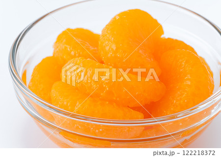 ガラスの器に入った缶詰のみかんと甘夏みかん