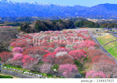 【三重県】いなべ梅林公園の満開の梅と鈴鹿山脈