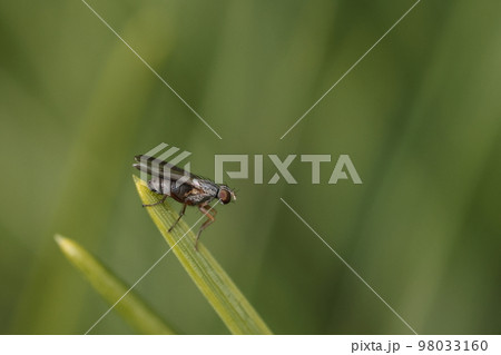 生き物 昆虫 ヘリグロヒメハナバエ、大きさは三ミリ半ほど。『ハナバエ』とつきますがイエバエ科のハエ