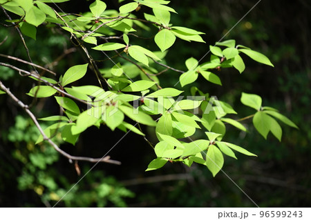 自然 植物 アブラチャン、四月半ば。花が終わり瑞々しい若葉が木陰を作る②