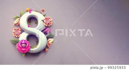 Illustration of number 8 and floral decoration for background and banner for 8th march women's day with copy space
