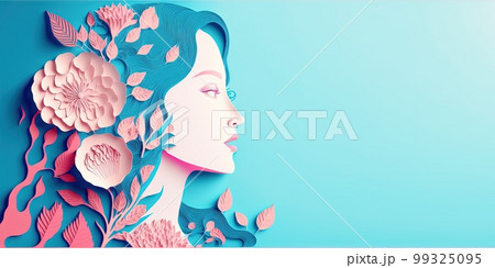 Illustration of face and flowers style paper cut with copy space for international women's day