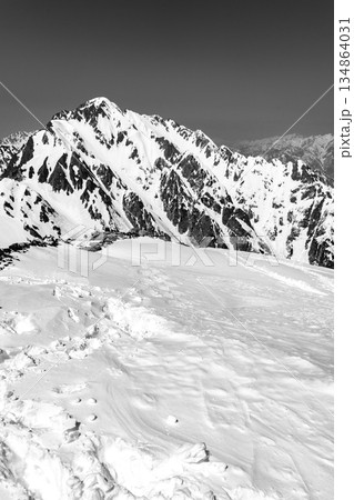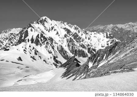 別山の北峰頂上から見る剱岳と八ッ峰 残雪期の北アルプス立山・別山登山 新聞広告用