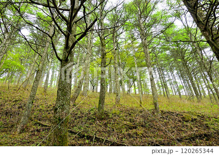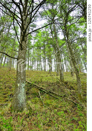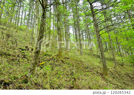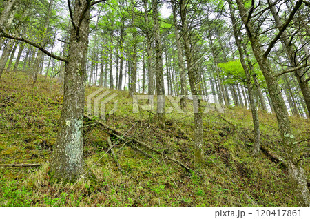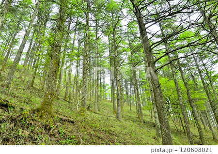 丹沢の八丁坂ノ頭 新緑のカラマツ林