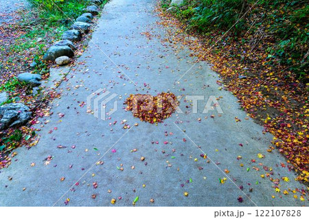 枯れ葉・モミジハート模様 秋の紅葉スポット・キャンプ場 行楽地スポット 立神峡(八代郡氷川町)