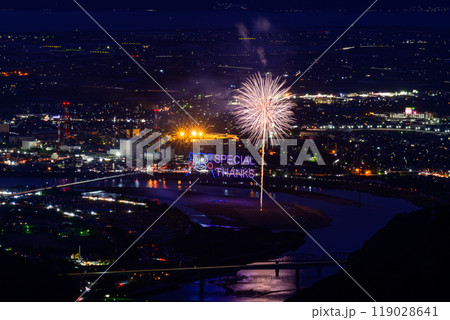 絶景の夜空に映える都市景観風景と夜花火「八代全国花火競技大会(さかもと八竜天文台)」(八代市坂本町)