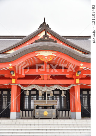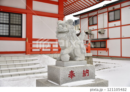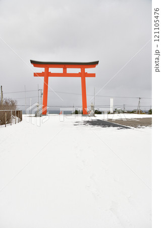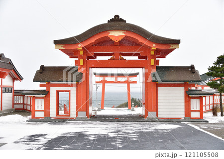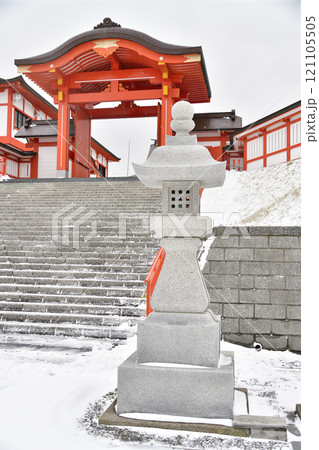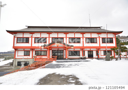 冬の北海道江差町で八大龍王神江聖団本宮の境内の風景を撮影