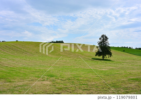 北海道富良野市の八幡丘にある春よ来いの木の風景