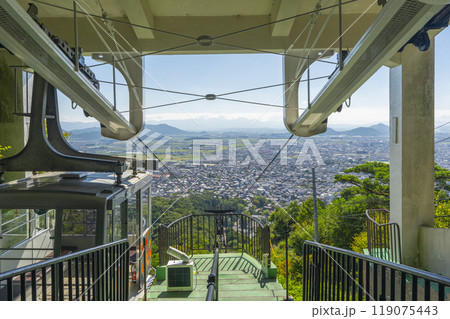 滋賀県近江八幡市 近江八幡の城下を見下ろす八幡山ロープウェーのゴンドラ