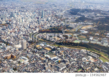 仙台市青葉区八幡上空から青葉通一番町方向を空撮