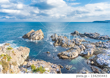 「青森県」葦毛崎展望台から眺めた雪景色の種差海岸 八戸市