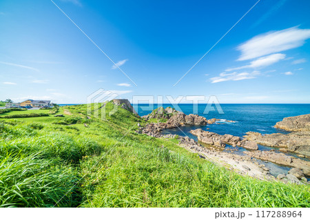「青森県」青空と葦毛崎海岸 種差海岸