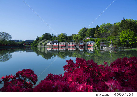 霧島躑躅が咲く長岡天満宮 八条ヶ池