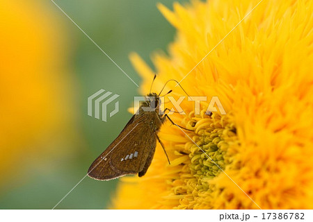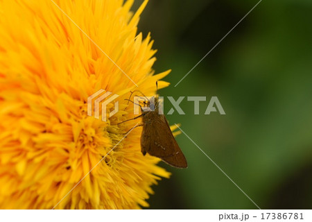 イチモンジセセリと八重ヒマワリ