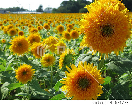 茨城県筑西市宮山地区ふるさとふれあい公園近く あけのひまわりフェスティバル会場の一面の八重向日葵