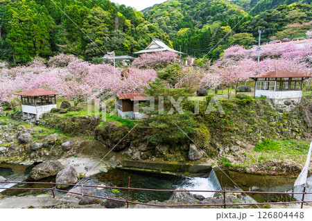 うららかな春日和に映える桜の雲海と境内風景 「不動尊一心寺の桜(大分県)」