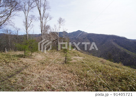 群馬県 郡界尾根から登るアカヤシオ咲く後袈裟丸山 八重樺原付近の高原 2022年5月6日