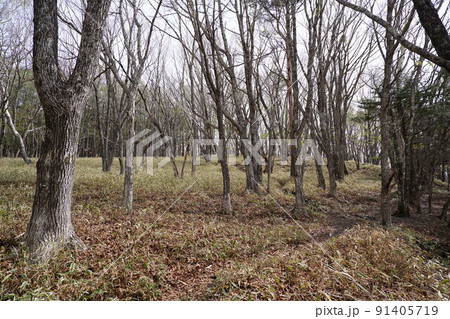 群馬県みどり市 郡界尾根コースの登山口から後袈裟丸山を目指す 広い緩やかな尾根の八重樺原を進む