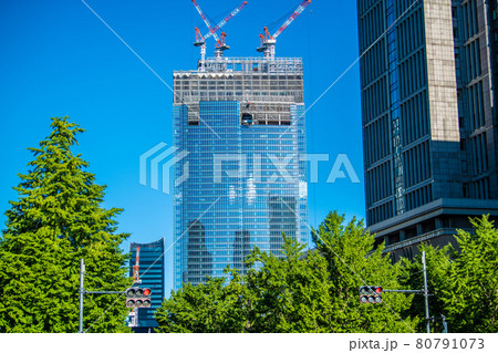 日本の東京都市景観 東京駅前再開発・建設中の東京ミッドタウン八重洲などを望む(ほぼ完成へ)