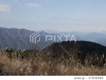 ススキと山なみ(八面山、天空の道展望所からの眺め)