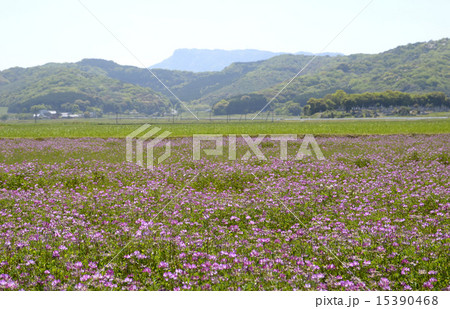大分県中津市の八面山が見える三光コスモス園よ八面山