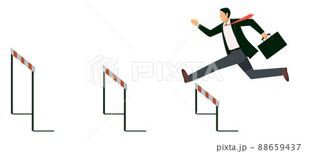 ビジネス系 8等身 ハードルを飛ぶ白人系ビジネスマンのイラスト 成功成長キャリアップ