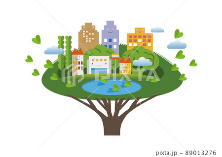 油彩風のエンボス。美しい街並みと暮らしの風景。人々が明るく暮らせる自然と住宅が溶け込む街づくり。