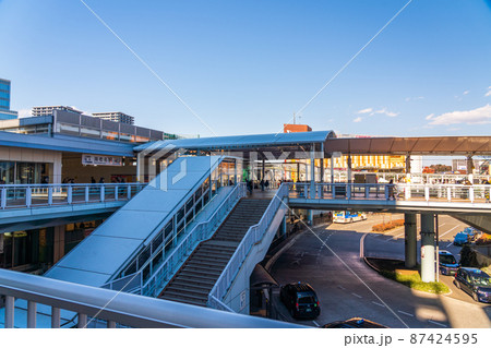 日本の東京都市景観 9月。東急電鉄 駒沢大学駅西口やエレベーター、奥に東口が見える