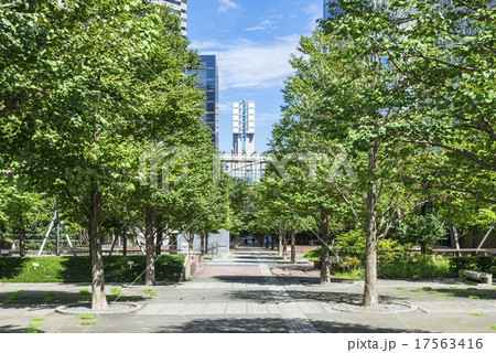公園の風景 再開発された二子玉川公園とタワーマンション群 東京都世田谷区